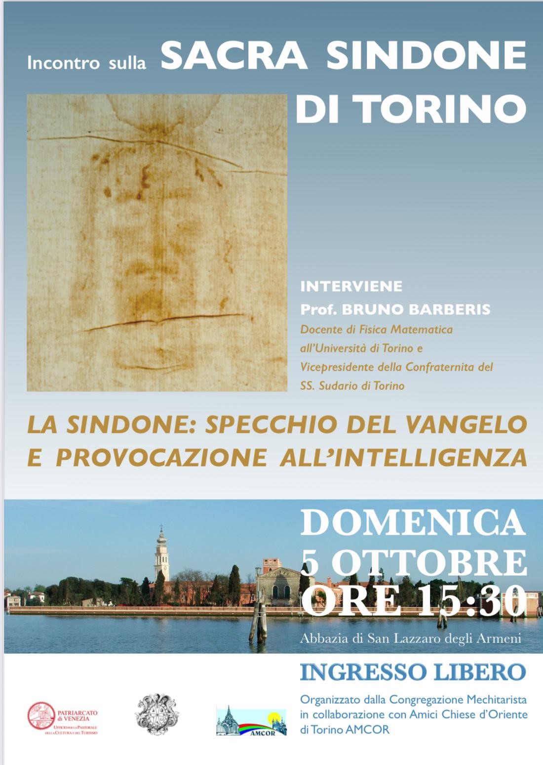 Domenica 3 ottobre 2025, ore 15.30 - Incontro sulla Sacra Sindone di Torino: "LA SINDONE: SPECCHIO DEL VANGELO E PROVOCAZIONE ALL'INTELLIGENZA" interviene il Prof. BRUNO BARBERIS. Abbazia di San Lazzaro degli Armeni - VENEZIA (ingresso libero)